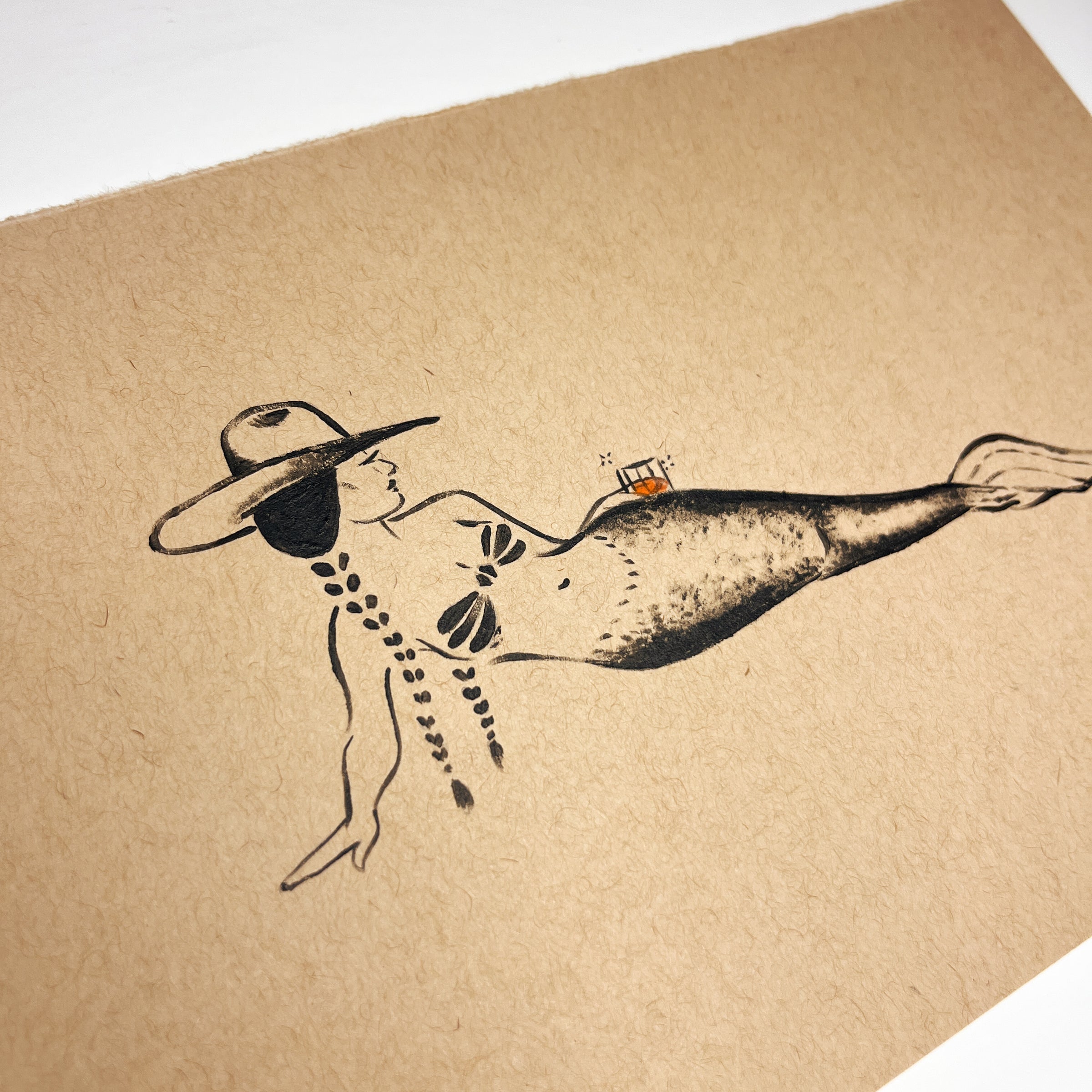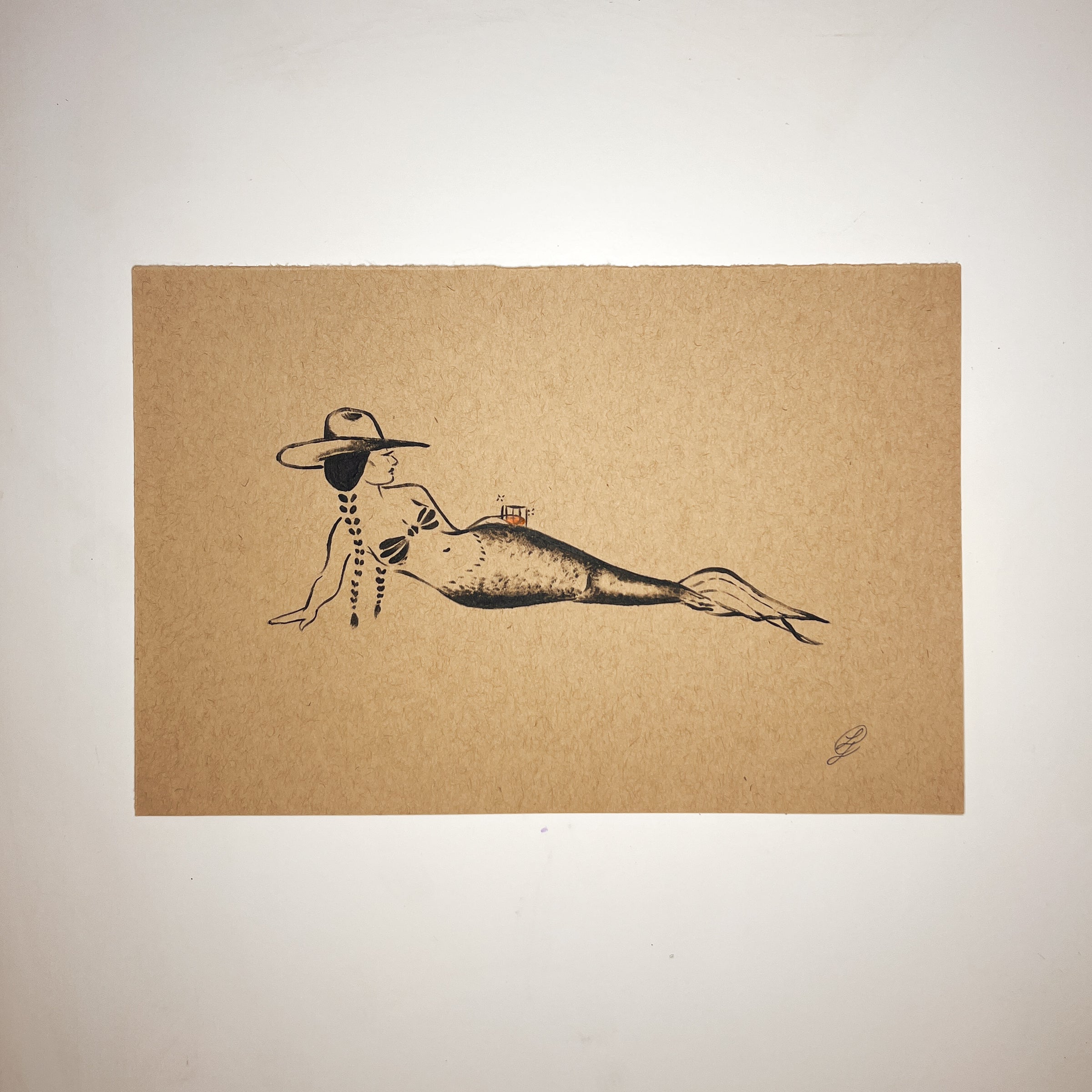 Acrylic paint and a splash of colored pencil on toned tan paper